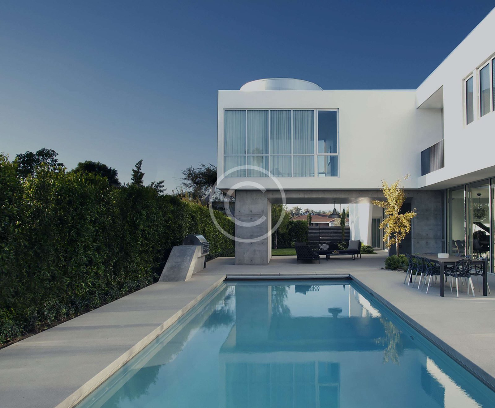 mahogany cabinetry, mahogany trim and pocketing doors throughout. The beautifully landscaped grounds include a large lap pool, spa and separate Pool.